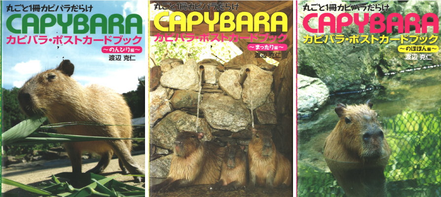 本から写真の部分を切り取って葉書大のカードに出来るのが特徴で厚手で光沢が強い紙を仕様。テーマに分けて収録・カピバラ豆知識も掲載。2010年12月時点の全国の飼育施設も紹介。