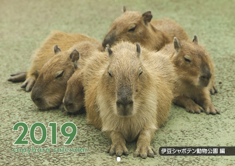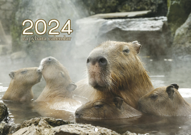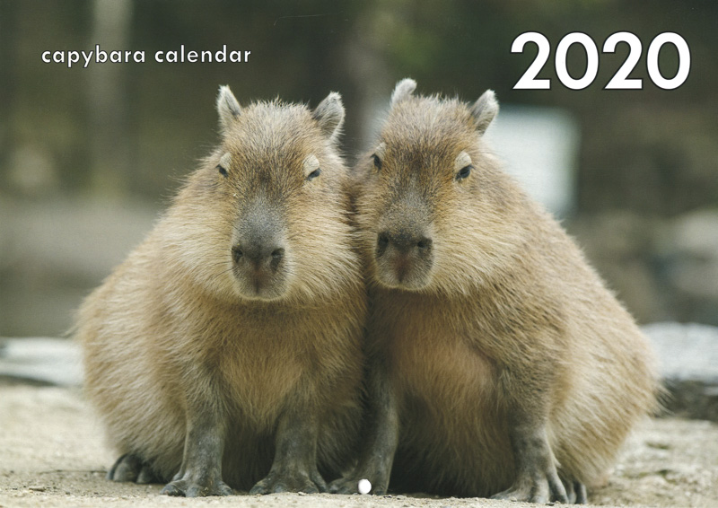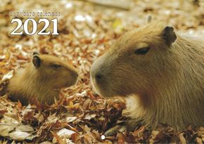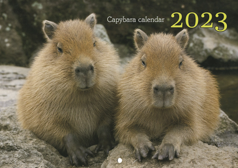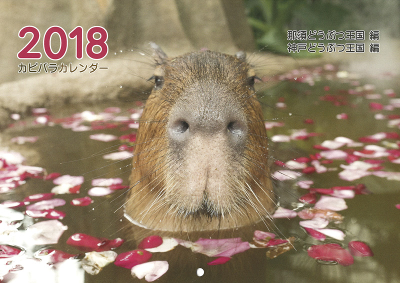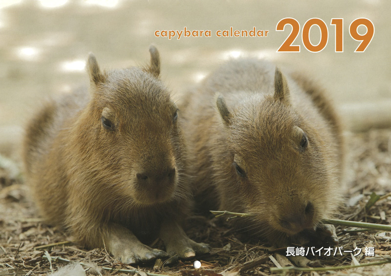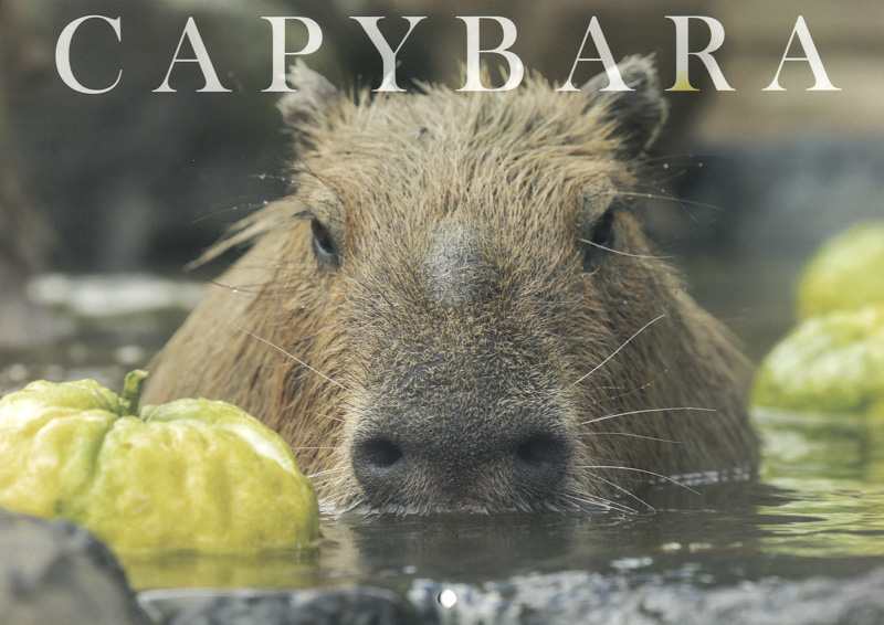 カピバラが主役のカレンダーを長崎バイオパーク・伊豆シャボテン動物公園・那須どうぶつ王国・神戸どうぶつ王国内の売店やお土産売り場にて販売して頂いております。A4サイズ開きA3サイズの壁掛けタイプとなっております。多くの皆様にご購入頂きましたこと、感謝申し上げます。