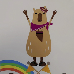 園内のレストランの外観に描かれていたイラスト。カピバラがスプーンを持って、はしゃいでいる。