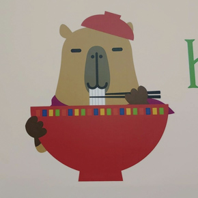 壁に描いてあったイラスト。カピバラも可愛いですが、ビーバーも可愛い。