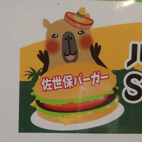 デフォルメされていても、一目でカピバラと分かる看板。特に顔と鼻は分かりやすい。