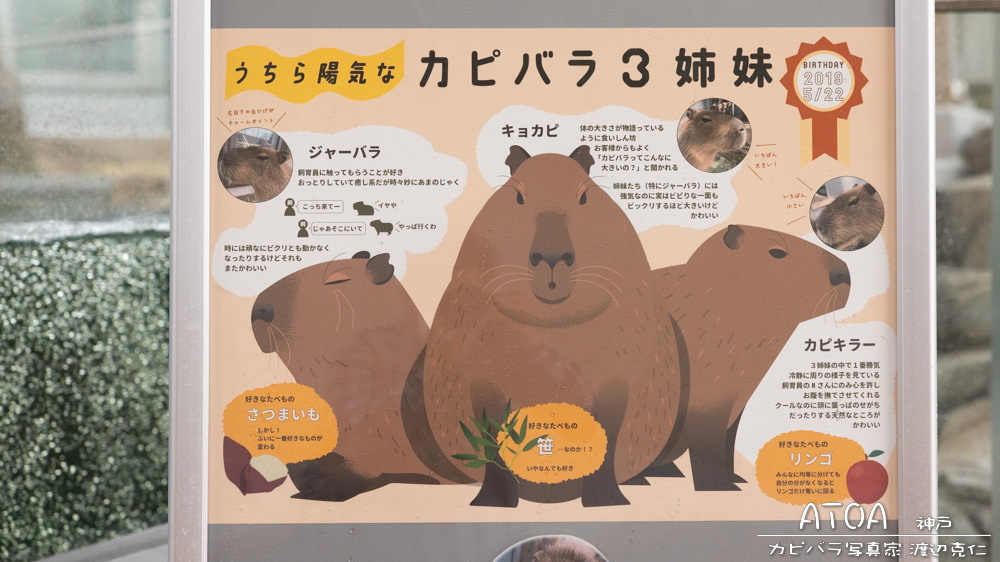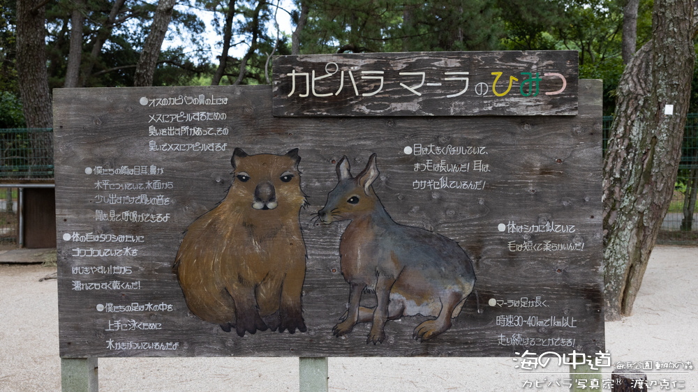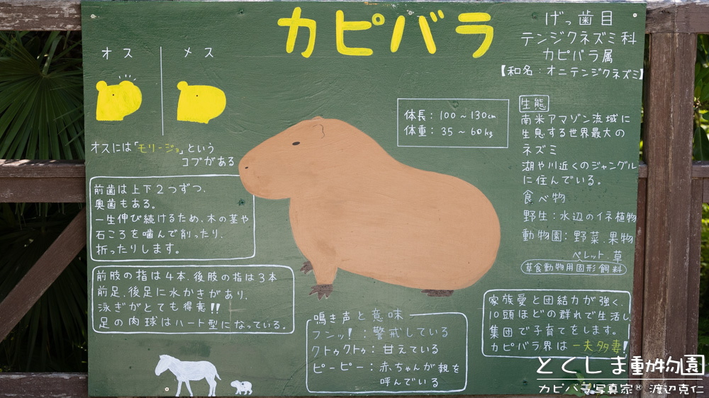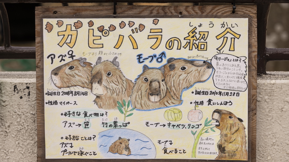 カピバラの解説看板。可愛いイラスト