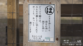 袖ヶ浦ふれあい動物縁の注意看板だけどカルタ・和風で楽しい。