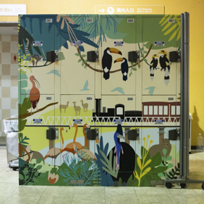 入場ゲート近くにあったコインロッカー。どこかに、カピバラが隠れています。
