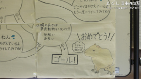 カピバラ放飼場の横にある休憩室兼観察室に掲示されてあったニュースと解説看板のイラスト。