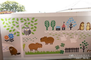 阿蘇ファームランドの壁にカピバラのイラスト。