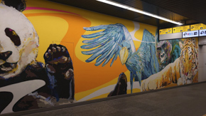 上野駅の公園口に向かう通路(上野アートウォール)にカピバラを発見!