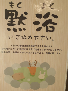 熊本空港の近くの日帰り温泉「七福の湯」に掲示されていた黙浴をお願いするポスター。和みますね。