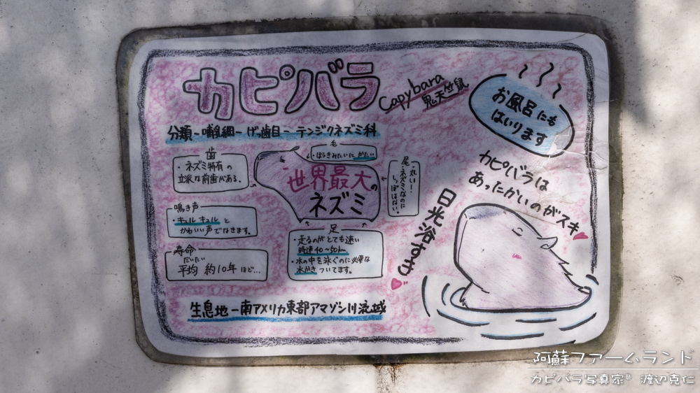 カピバラの解説看板、上手!!トリアスふれあい動物園