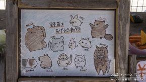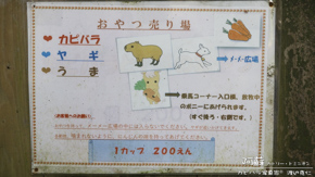 餌あげ体験の野菜を切った餌が売っているのだが、この可愛い掲示を見れば誰にあげてよいか一目瞭然。